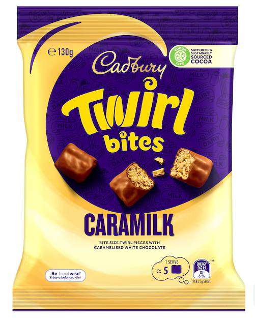 Cadbury Caramilk Twirl Milk Chocolate Bites Snack & Share Bag 130g