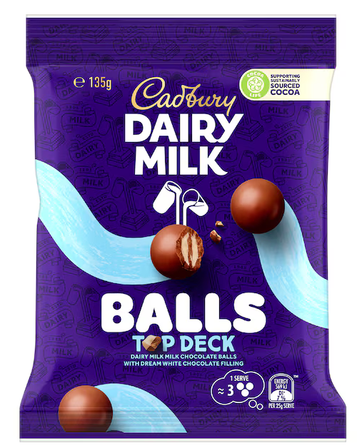 Cadbury Dairy Milk Top Deck Chocolate Balls Snack & Share Bag 135g