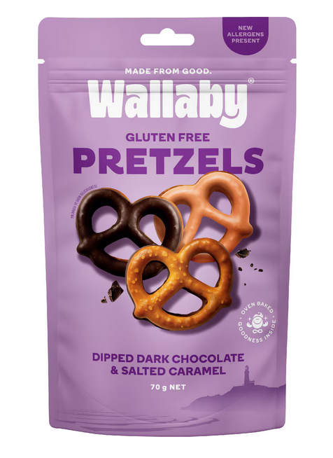 Wallaby Gluten Free Pretzels Dark Chocolate & Salted Caramel 70g